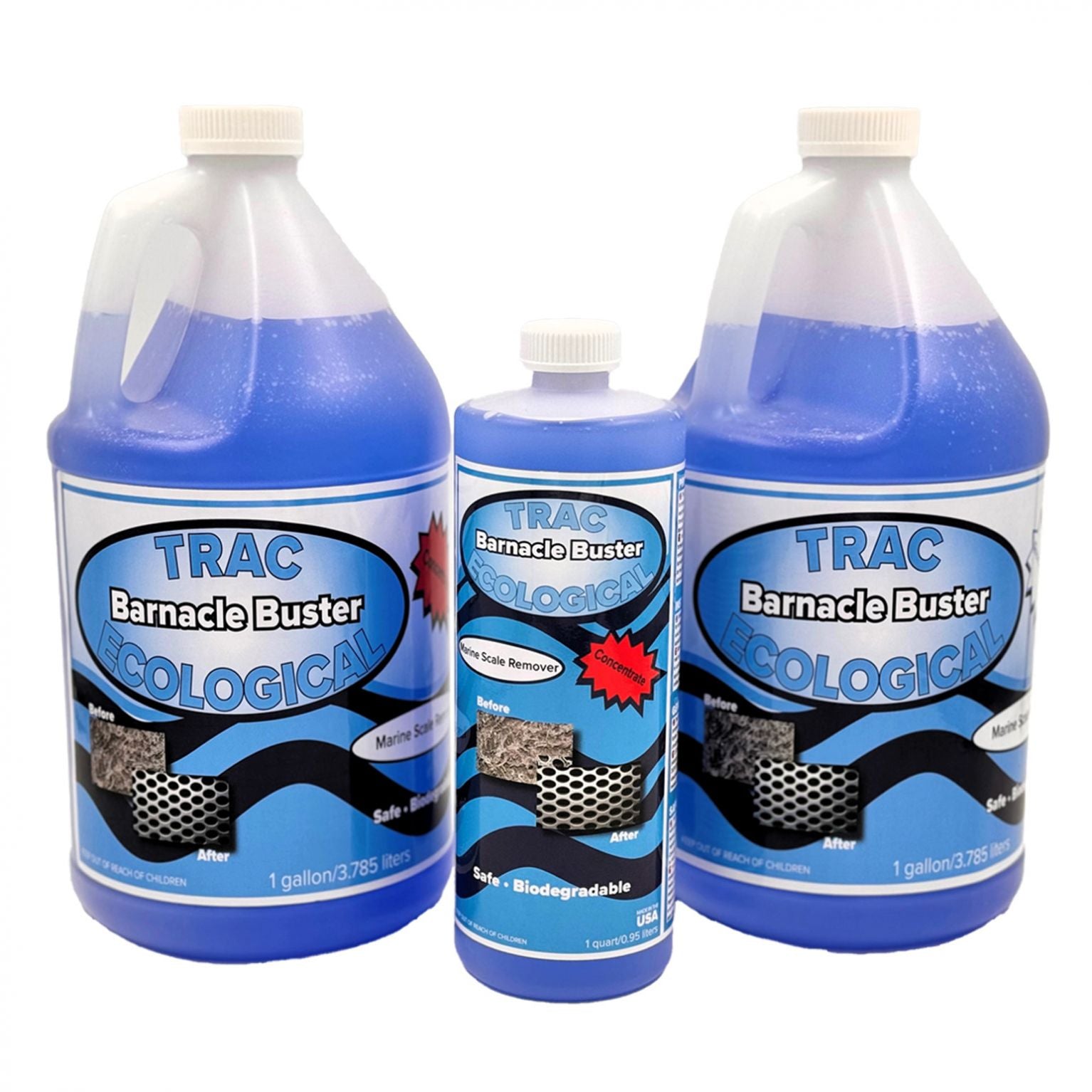 Trac Ecological Barnacle Buster is a safe and biodegradable marine scale remover specifically formulated to meet an industry-wide need for fast, safe, cost-effective alternatives to seawater-cooled equipment's mechanical cleaning. With minimal dismantling required, Trac Ecological Barnacle Buster can be safely re-circulated through seawater cooling systems, dissolving barnacle and zebra mussel exoskeletons, rust, and mineral deposits including removal of calcium and lime scale. Most applications are completed within 4 hours!